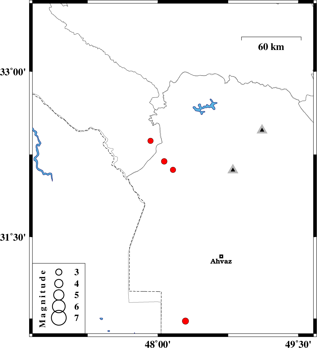 | 2016/11/11 | 07:08:51.9 | 10:38:51.9 | 32.374 | 47.921 | 14 | ML2.7 | Ilam Province, 45 km -West of Dezful |