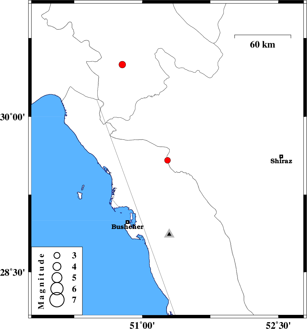 | 2016/11/17 | 21:27:49.3 | 00:57:49.3 | 29.581 | 51.278 | 6 | ML2.9 | Bushehr Province, 36 km North of Borazjan | ||
