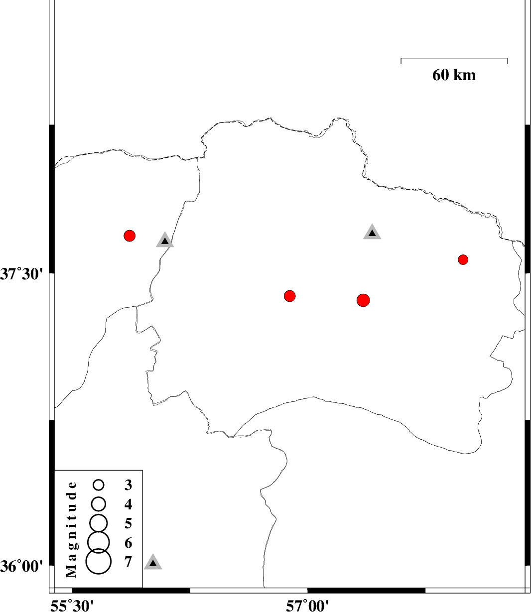 | 2016/11/02 | 23:23:05.4 | 02:53:05.4 | 37.362 | 57.354 | 15 | ML3.6 | Khorasan(north) Province, 12 km South of Bojnurd |