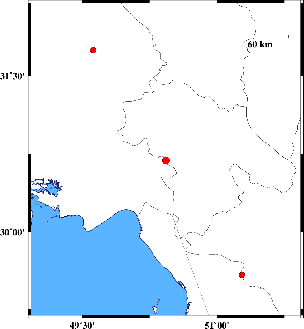 | 2016/11/17 | 21:27:49.3 | 00:57:49.3 | 29.581 | 51.278 | 6 | ML2.9 | Bushehr Province, 36 km North of Borazjan |