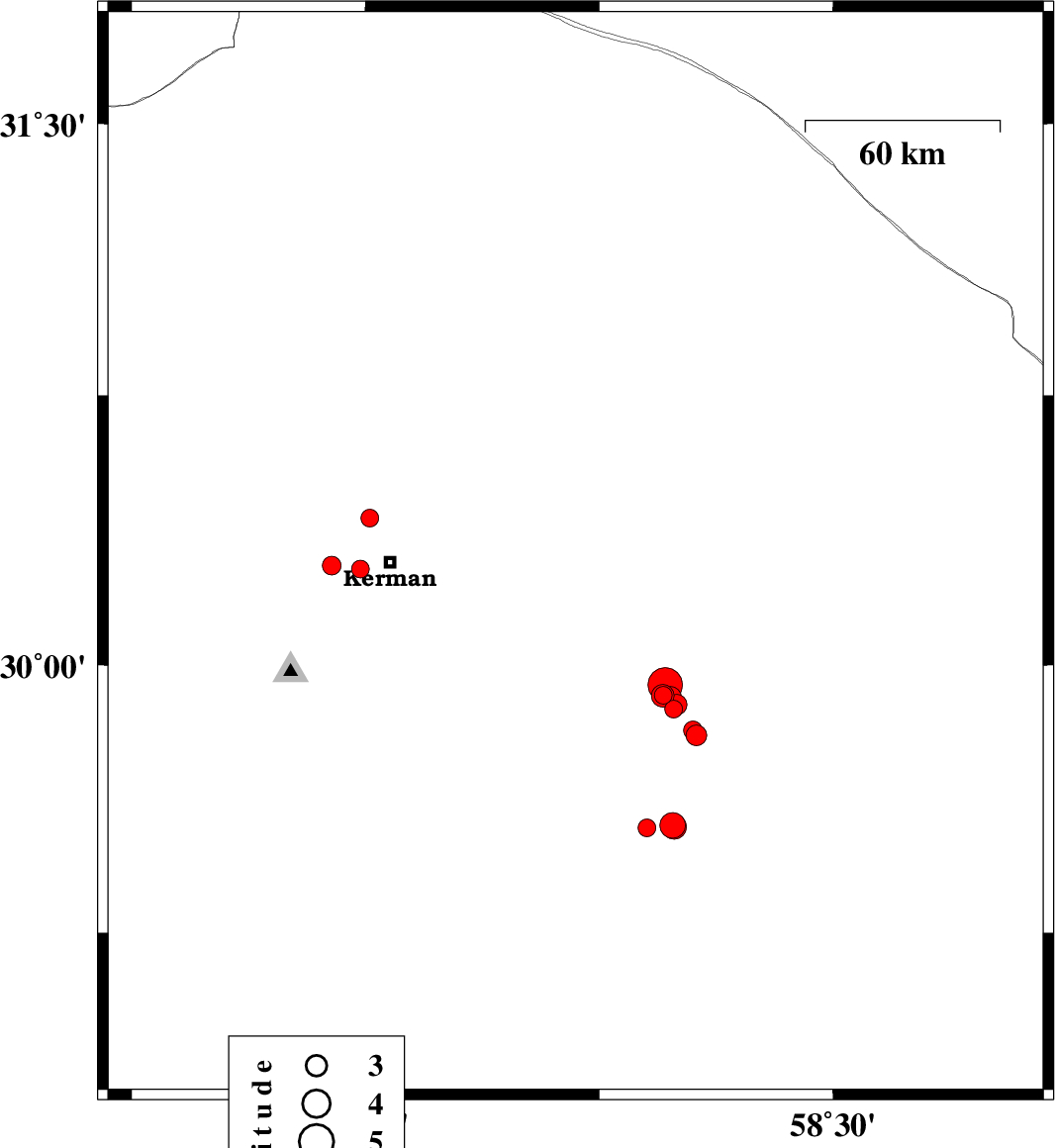2016/11/10 13:12:11.8 16:42:11.8 30.05157.5146 ML2.6 Kerman Province, 49 km South-East of Kerman