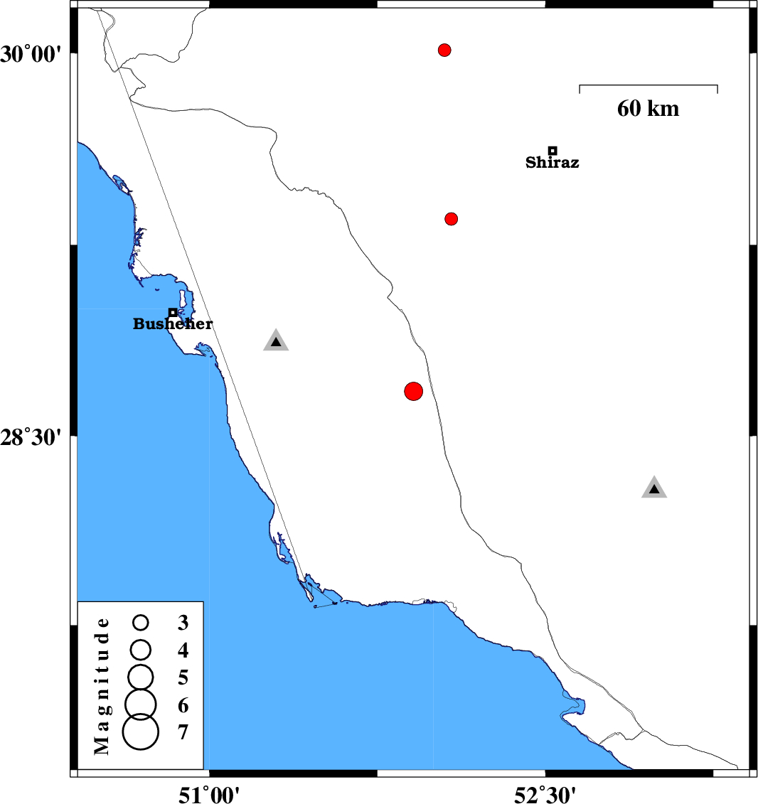 | 2016/12/03 | 12:37:09.1 | 16:07:09.1 | 28.675 | 51.911 | 12 | ML3.7 | Bushehr Province, 28 km South-West of Farashband | ||