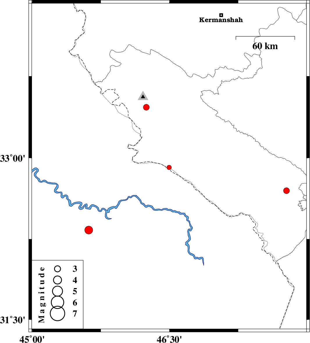 | 2016/12/05 | 22:16:55.6 | 01:46:55.6 | 32.699 | 47.778 | 14 | ML2.9 | Ilam Province, 51 km South of Pol-e dokhtar | ||
