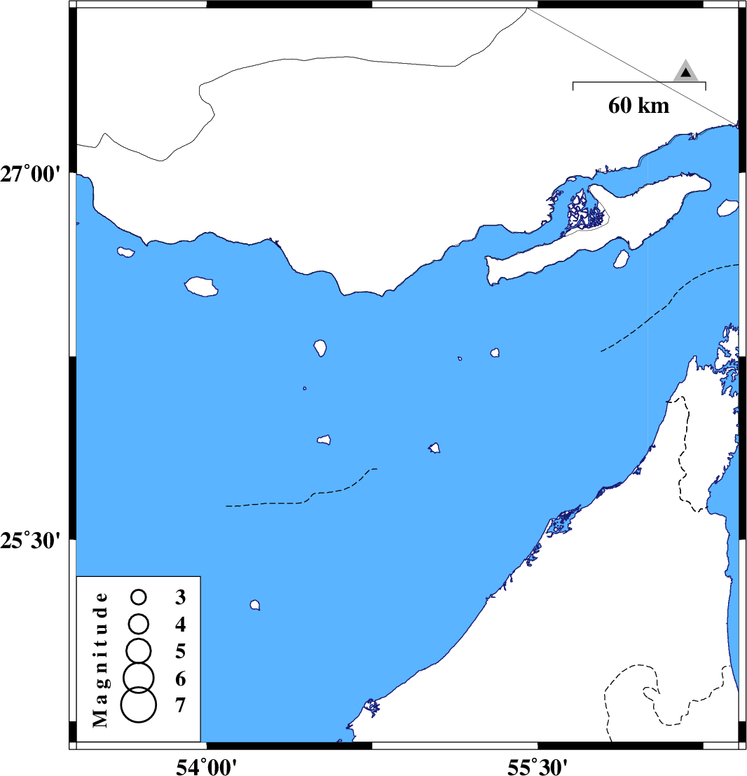 | 2016/12/09 | 16:06:07.5 | 19:36:07.5 | 26.165 | 54.91 | 15 | ML3.4 | Persian Gulf, 35 km North-West of Abu Musa |