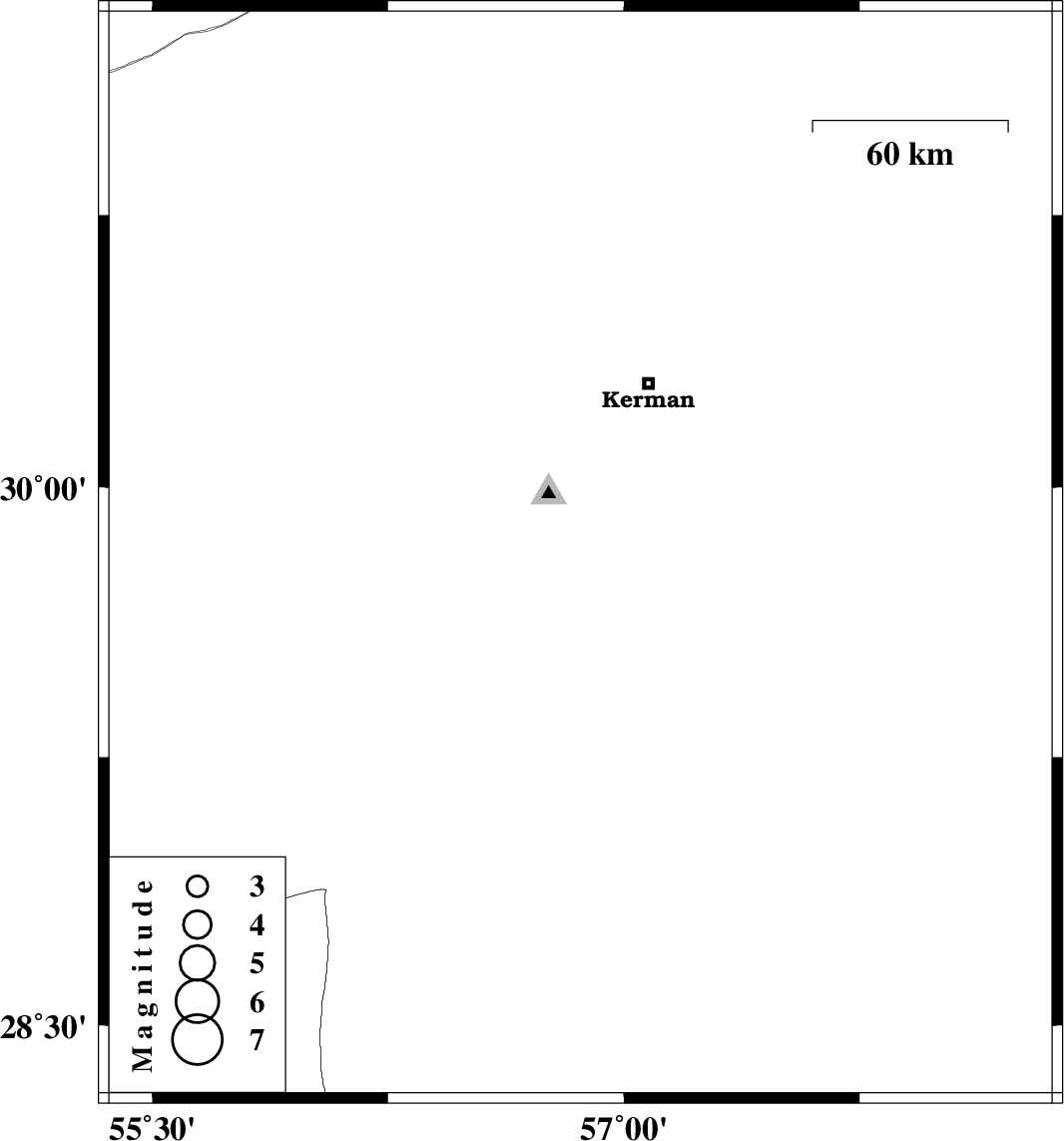 | 2016/12/18 | 13:52:31.7 | 17:22:31.7 | 29.81 | 56.862 | 14 | ML3.5 | Kerman Province, 31 km South-East of Bardsir |