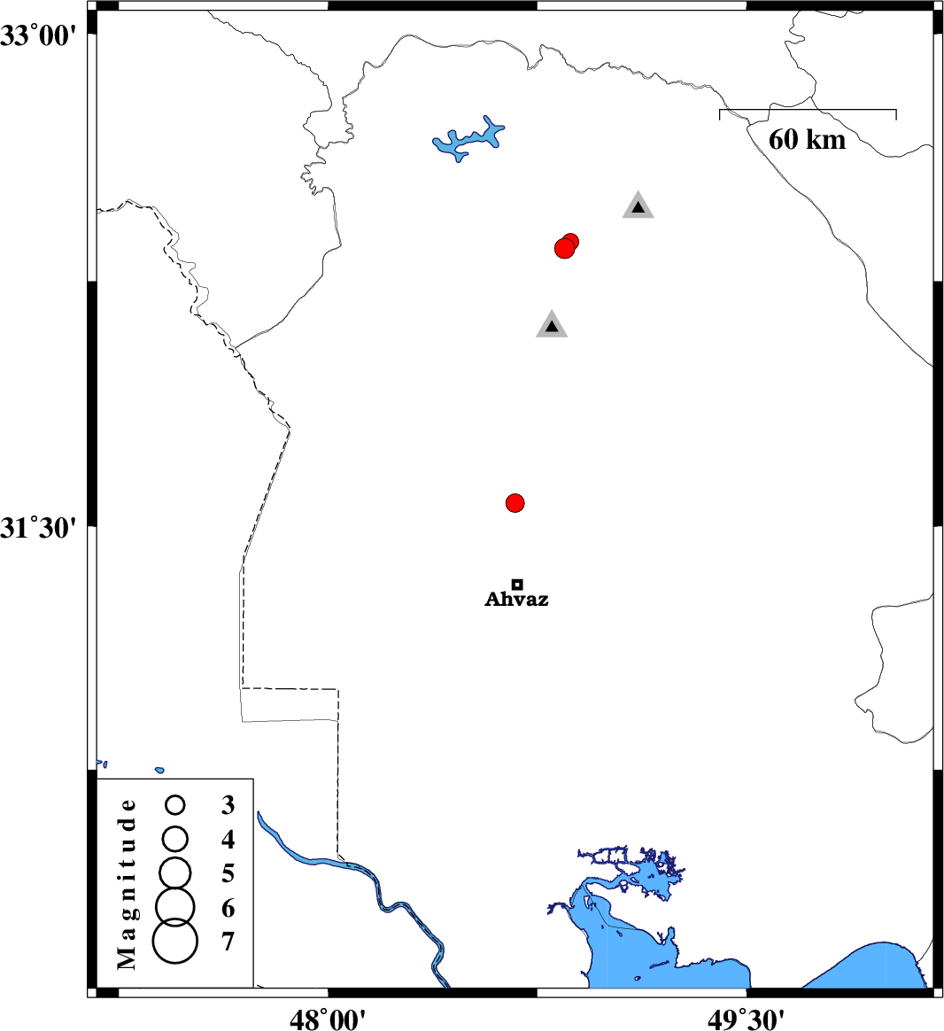 | 2016/12/18 | 23:48:10.5 | 03:18:10.5 | 32.369 | 48.869 | 15 | ML2.7 | Khoozestan Province, 23 km -West of Lali |