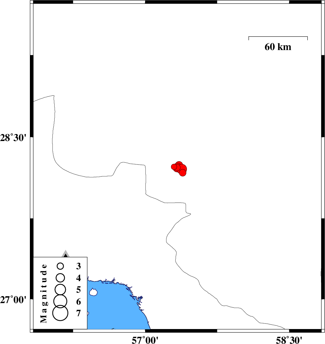 2016/12/27 12:41:27.6 16:11:27.6 28.20557.38115 ML4.6 Kerman Province, 42 km North-West of Kahnuj