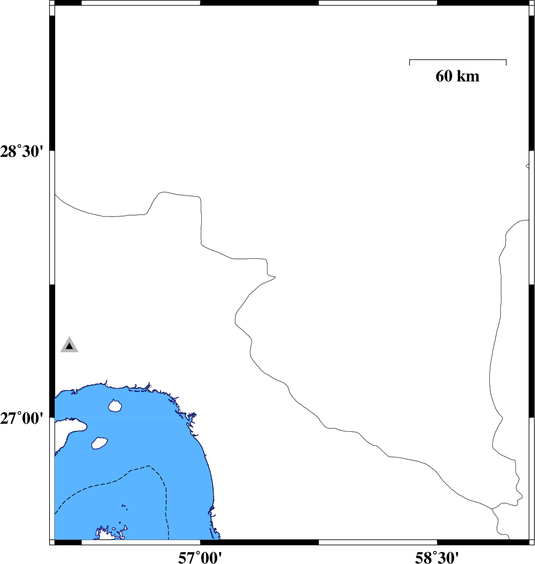 |  | 2016/12/27 | 20:53:53.6 | 00:23:53.6 | 28.171 | 57.391 | 14 | ML3.2 | Kerman Province, 39 km North-West of Kahnuj |  |