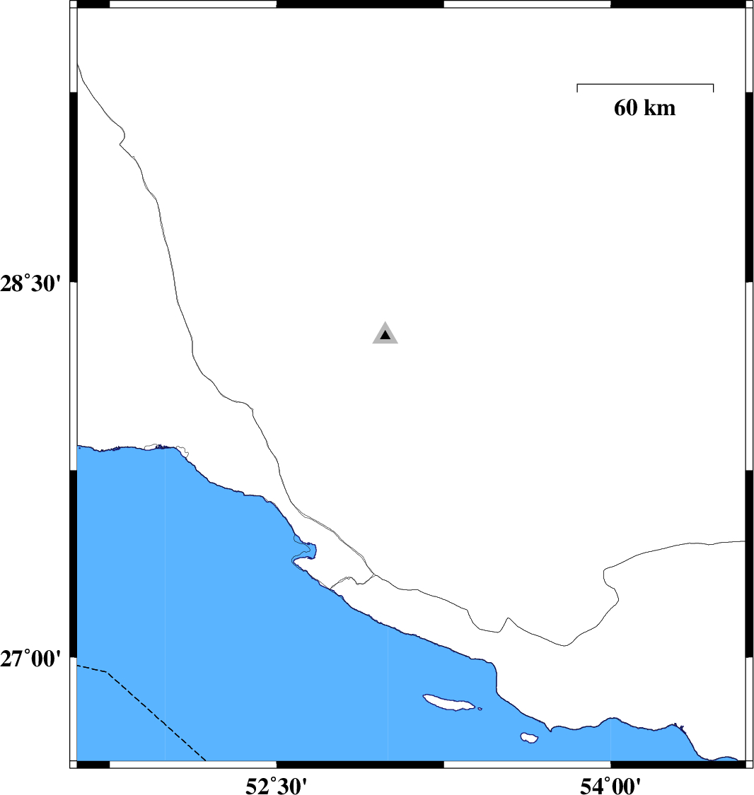 | 2017/01/06 | 02:33:27.7 | 06:03:27.7 | 28.083 | 53.104 | 15 | ML4.9 | Fars Province, 43 km South of Qir va Karzin | ||