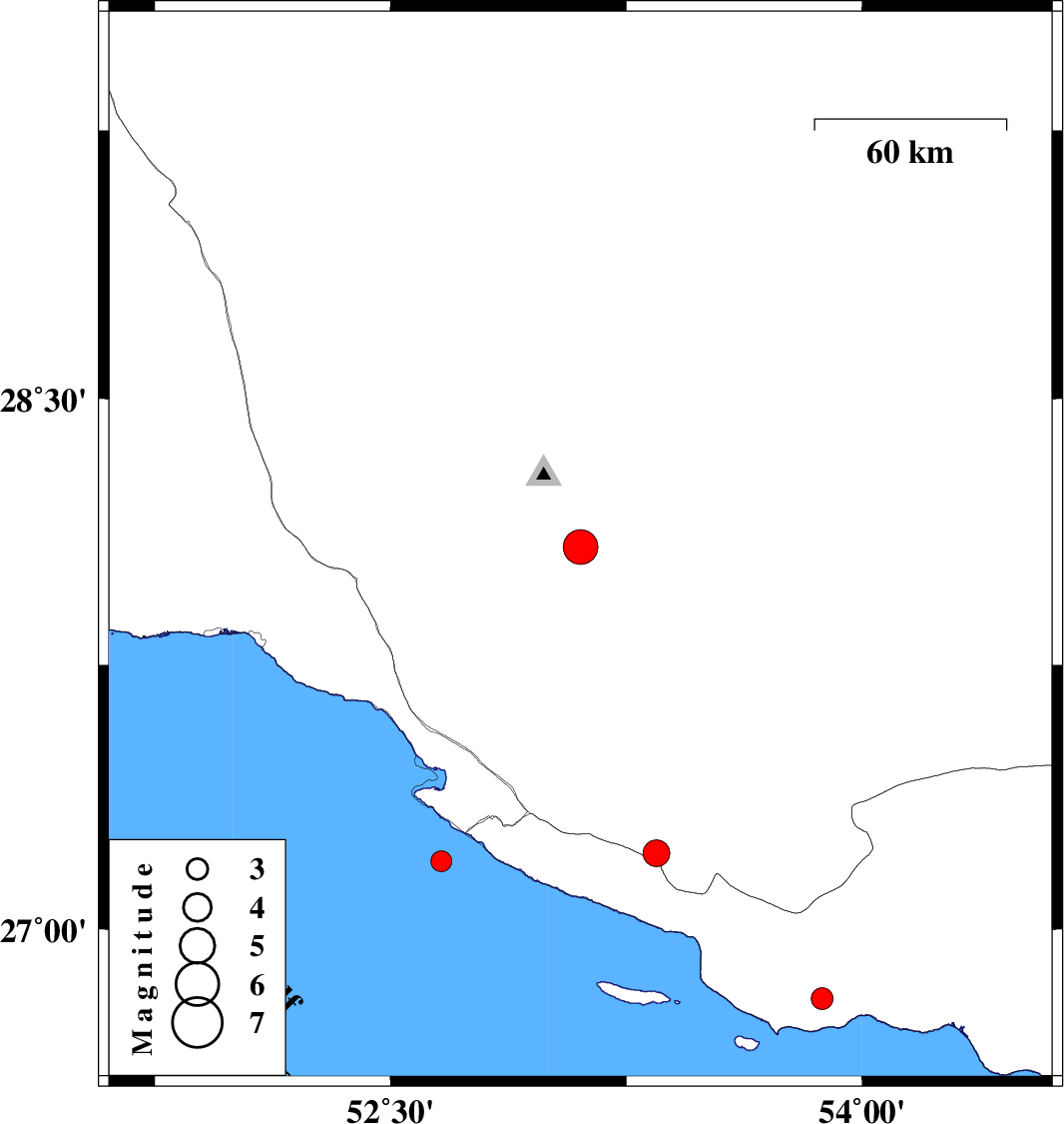 | 2016/12/30 | 19:47:37.1 | 23:17:37.1 | 27.217 | 53.346 | 15 | ML3.8 | Fars Province, 22 km South-East of Lamerd |