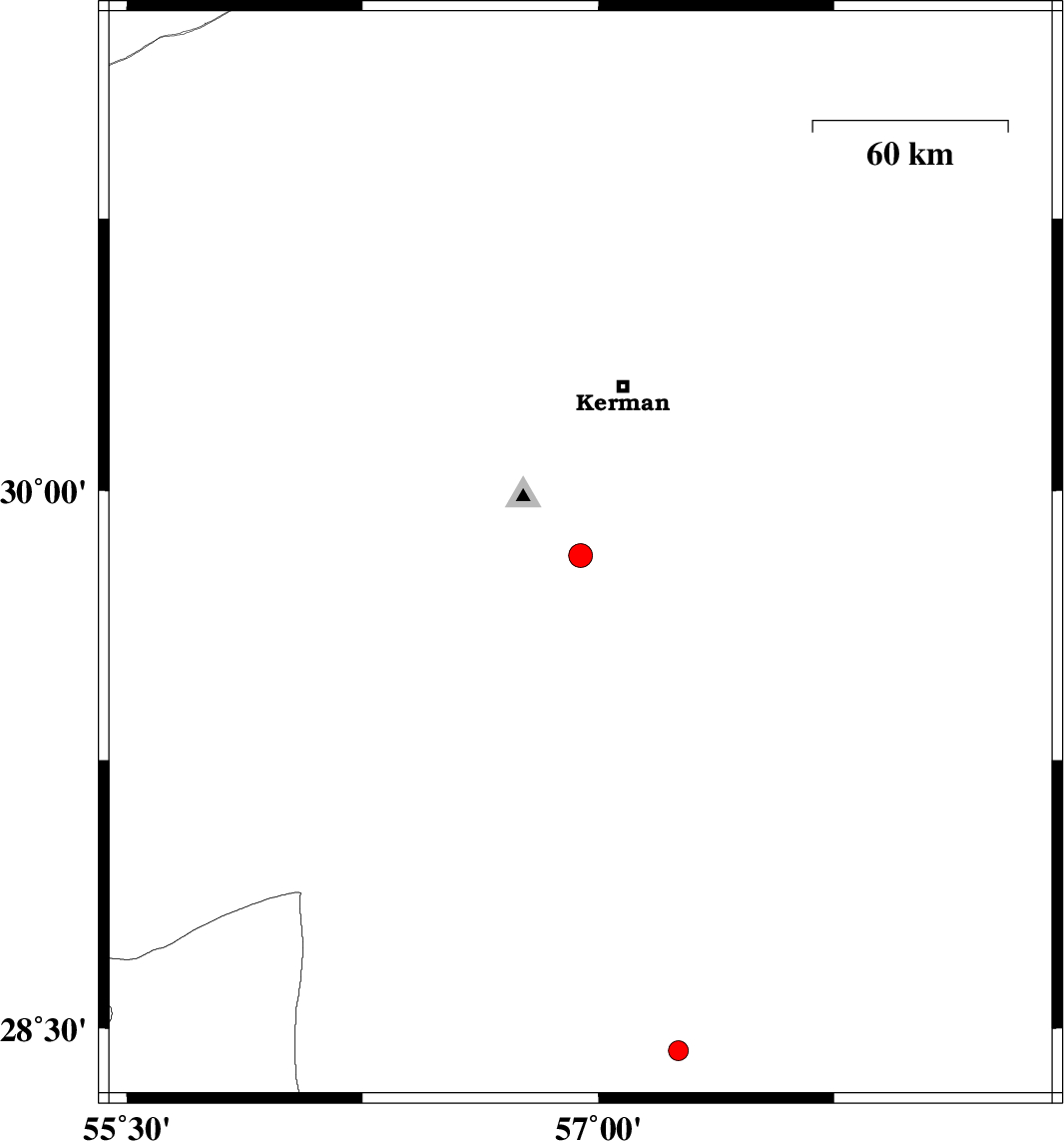 | 2017/01/04 | 18:30:43.9 | 22:00:43.9 | 29.819 | 56.943 | 5 | ML3.4 | Kerman Province, 37 km South-East of Bardsir | ||