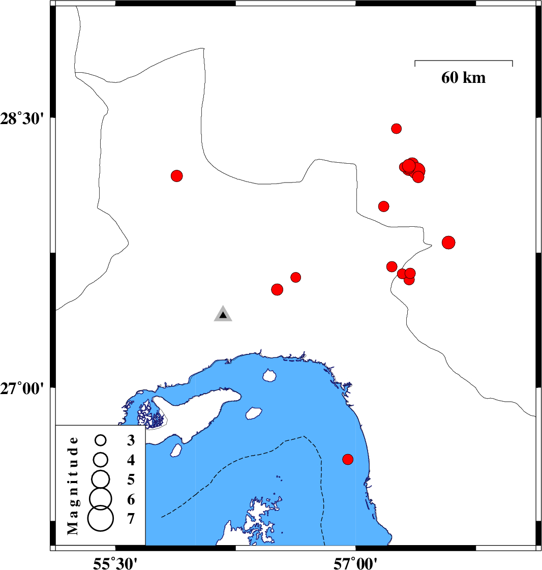 Oman Sea, 63 km South-West of Minab | |