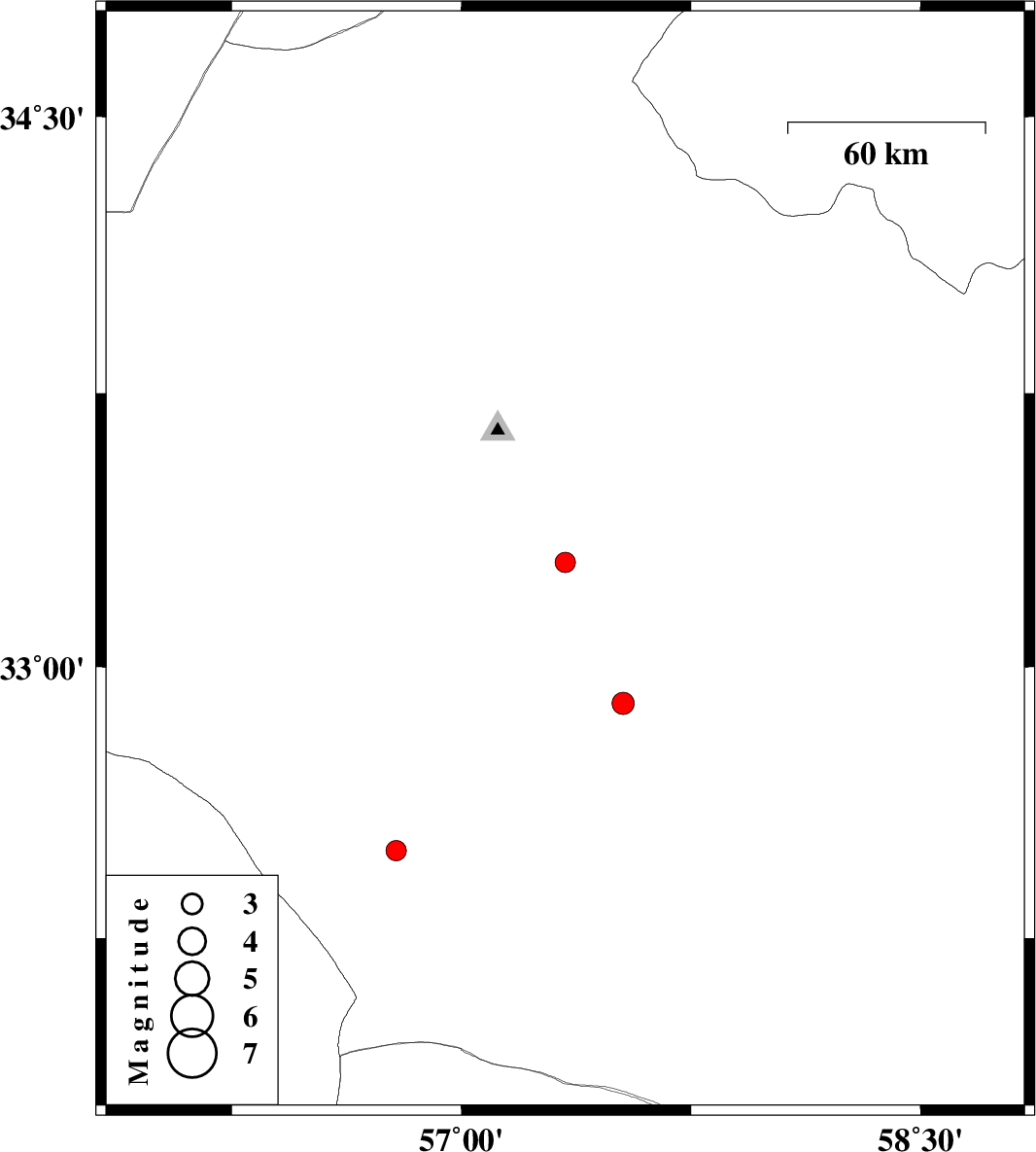 | 2017/01/13 | 08:23:34.0 | 11:53:34.0 | 33.286 | 57.339 | 6 | ML3 | Yazd Province, 52 km South-East of Tabas | ||