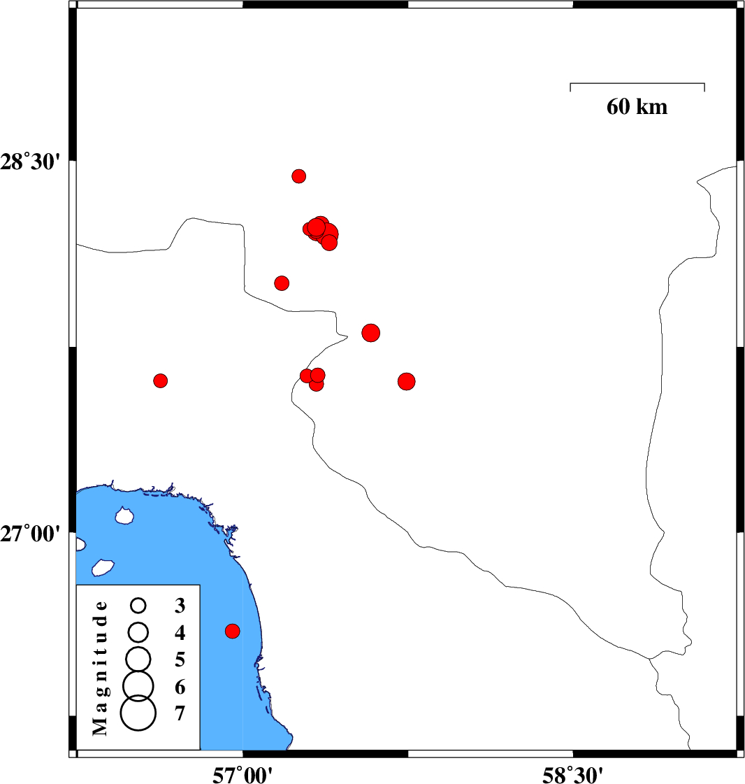 Oman Sea, 63 km South-West of Minab | |