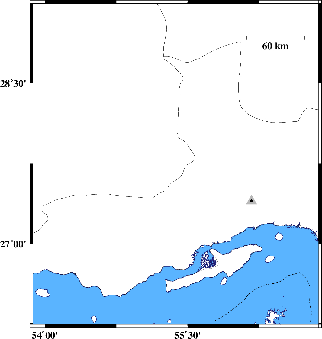 | 2017/01/07 | 23:29:11.6 | 02:59:11.6 | 27.531 | 55.089 | 17 | ML2.9 | Fars Province, 76 km South-East of Lar |