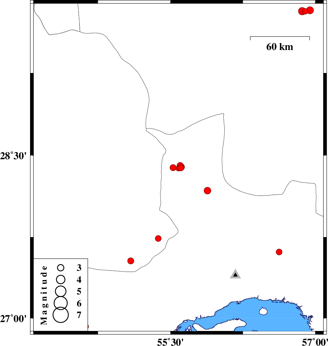 2017/01/03 14:14:13.3 17:44:13.3 26.92354.6217 ML3 Hormozgan Province, 40 km South-East of Bastak