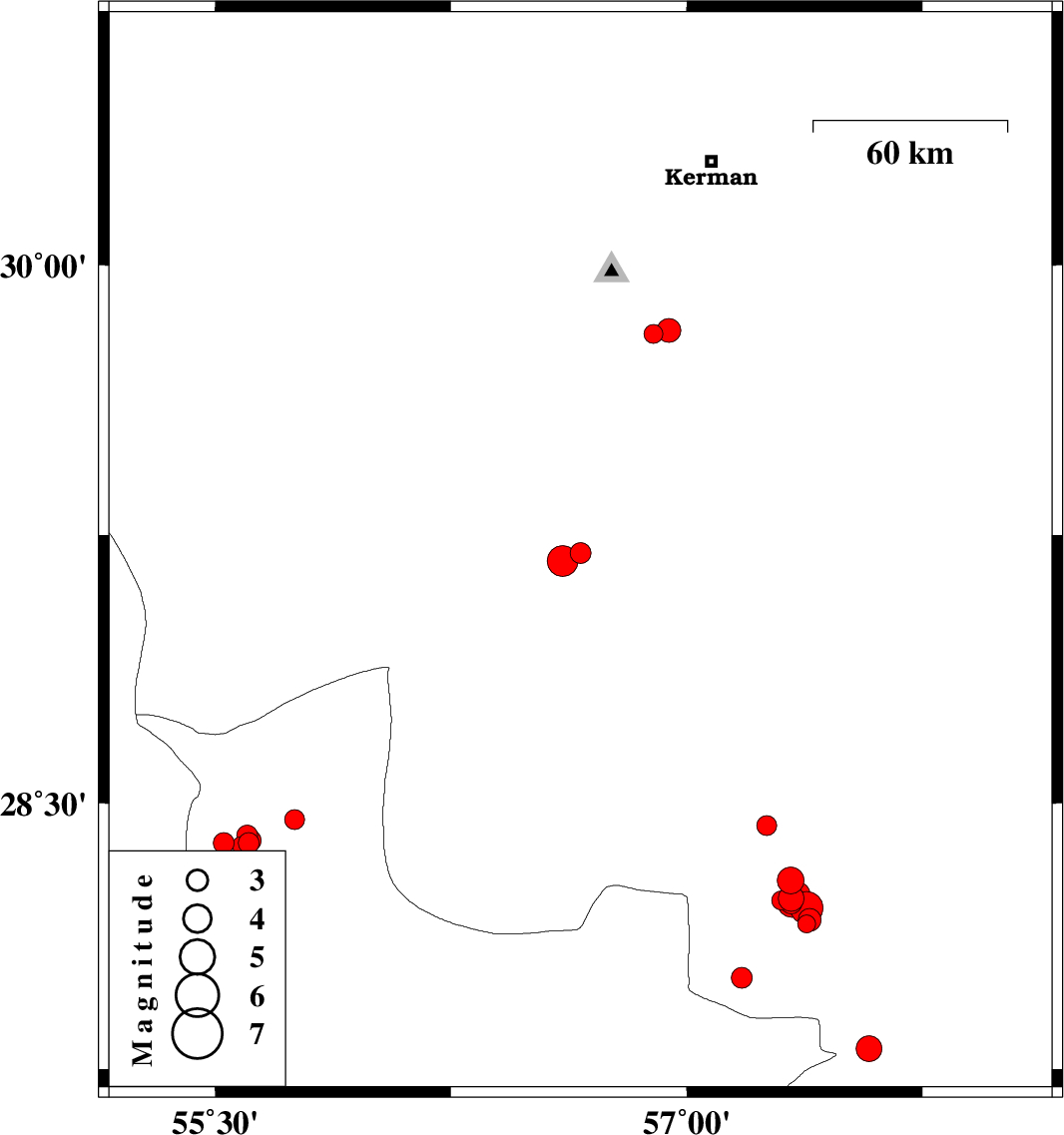 2017/01/09 08:12:00.6 11:42:00.6 28.00757.17516 ML2.9 Kerman Province, 51 km -West of Kahnuj