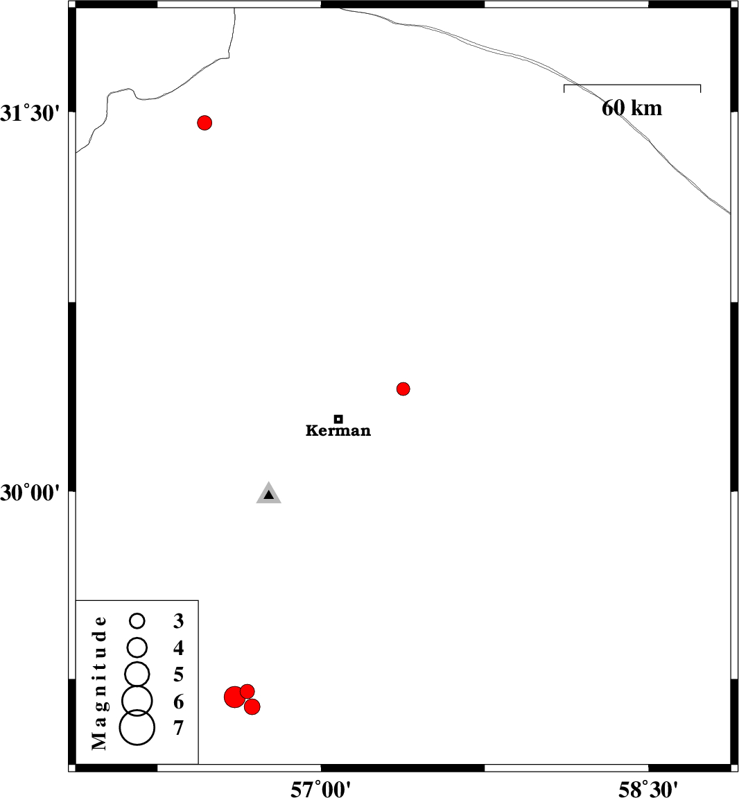 | 2017/01/22 | 19:46:40.5 | 23:16:40.5 | 30.407 | 57.376 | 14 | ML2.7 | Kerman Province, 31 km North-East of Kerman | ||
