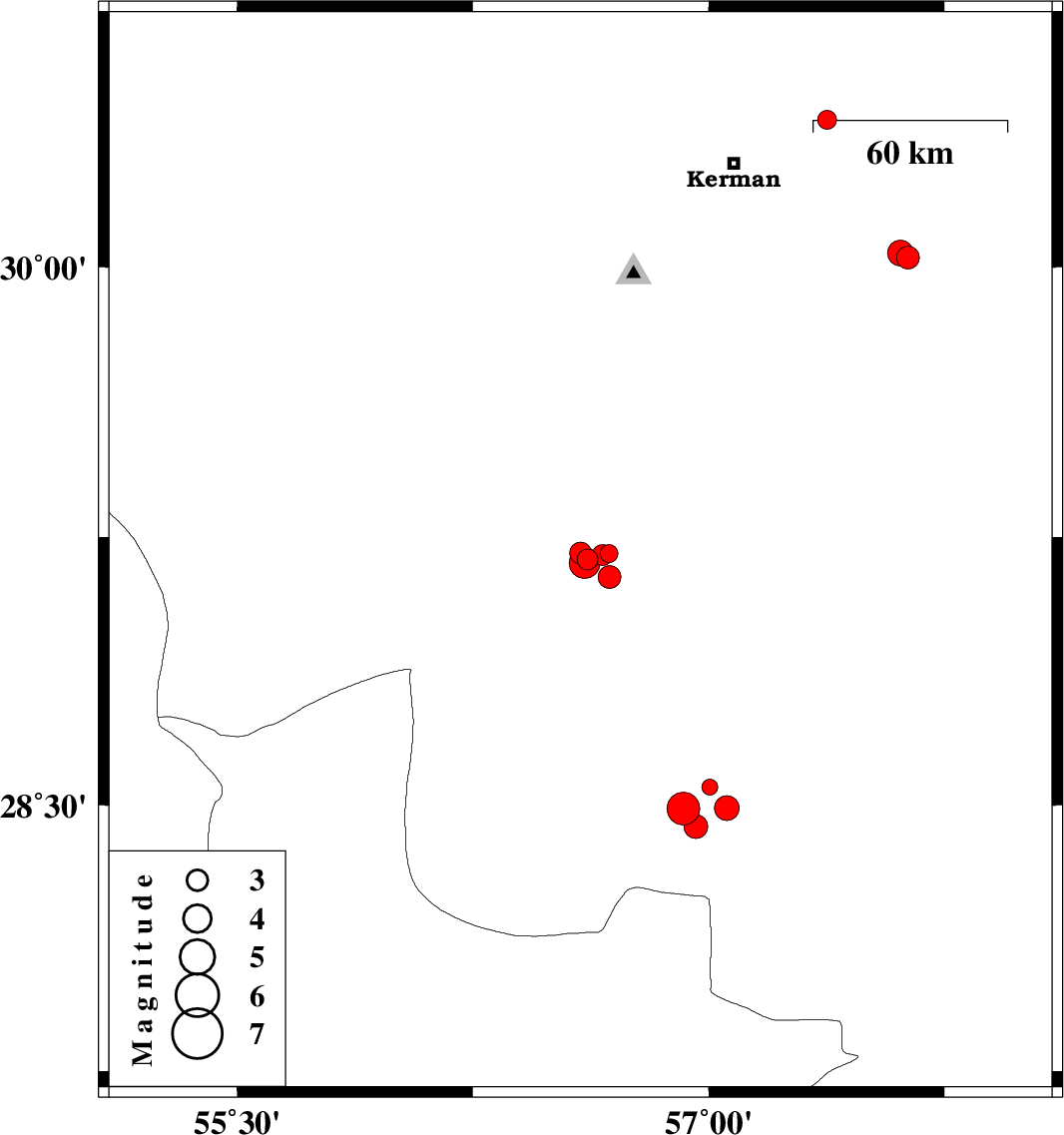 2017/01/22 19:46:40.5 23:16:40.5 30.40757.37614 ML2.7 Kerman Province, 31 km North-East of Kerman