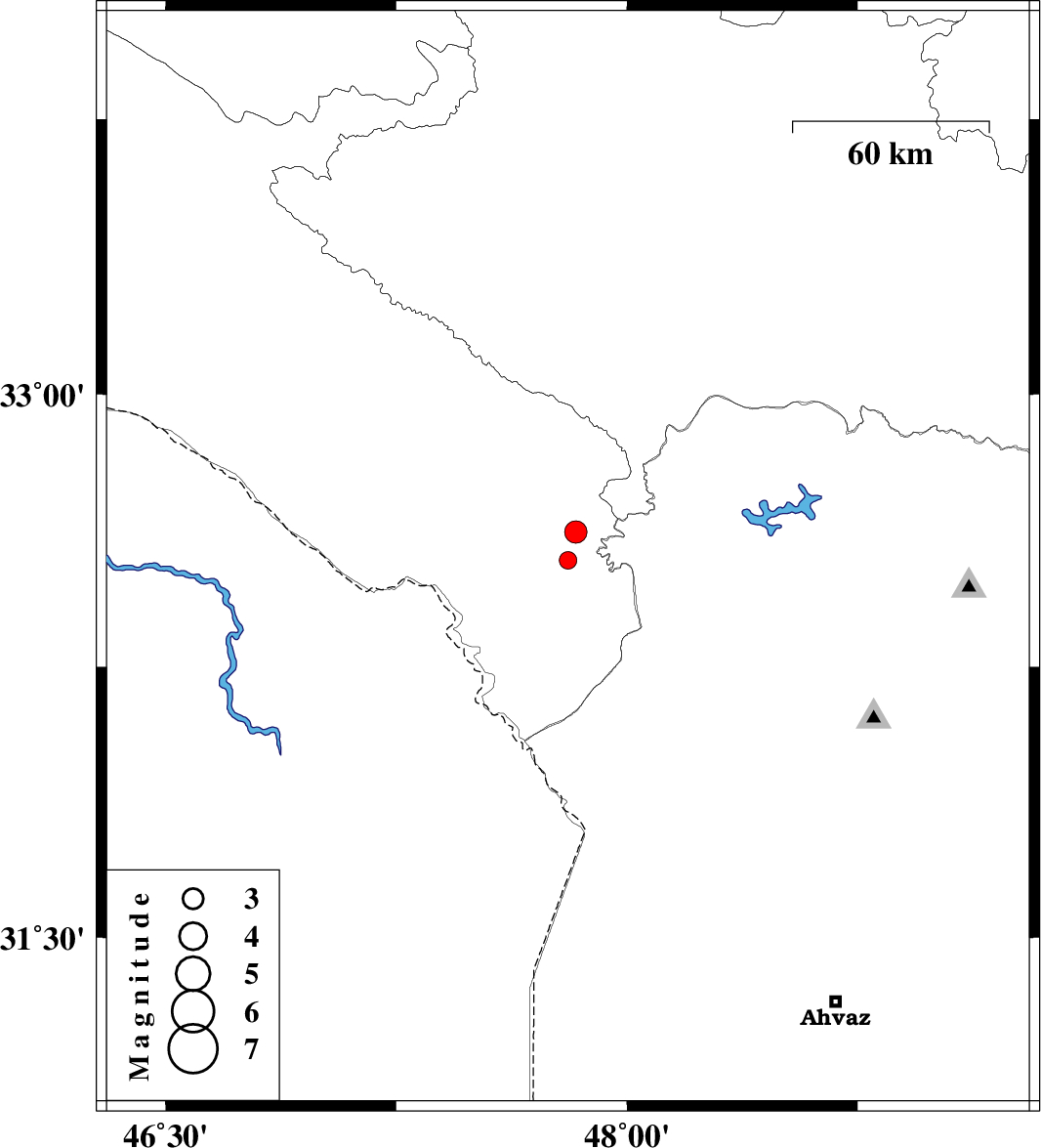 | 2017/01/26 | 22:42:25.3 | 02:12:25.3 | 32.621 | 47.833 | 14 | ML3.3 | Ilam Province, 54 km -East of Dehloran |