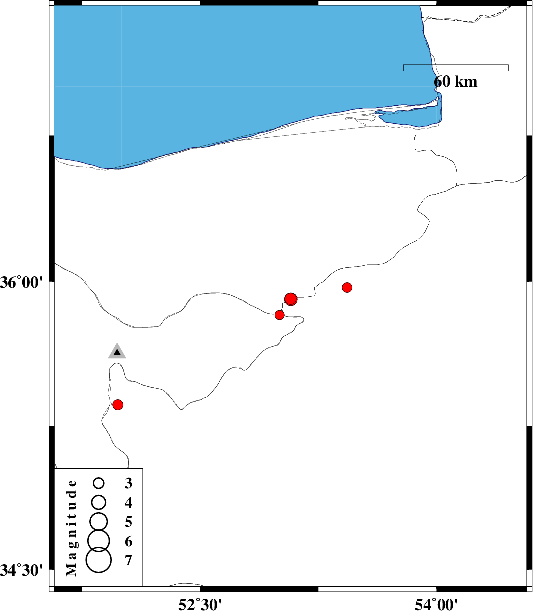 | 2017/02/04 | 05:54:10.5 | 09:24:10.5 | 35.97 | 53.432 | 14 | ML2.8 | Semnan Province, 45 km North of Semnan | ||