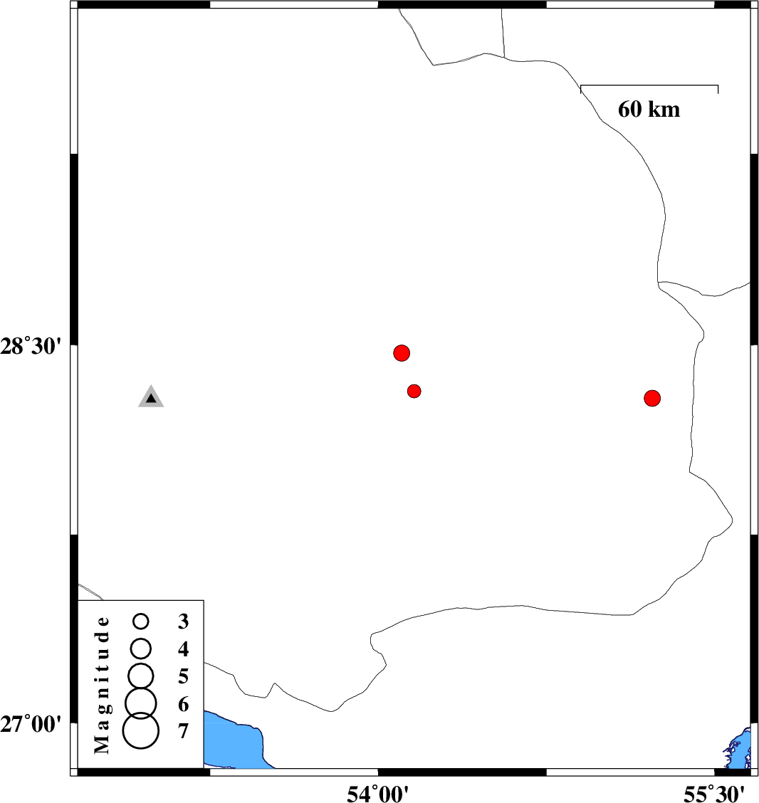 | 2017/02/12 | 10:46:05.1 | 14:16:05.1 | 28.318 | 54.16 | 14 | ML2.7 | Fars Province, 62 km South-East of Jahrom | ||