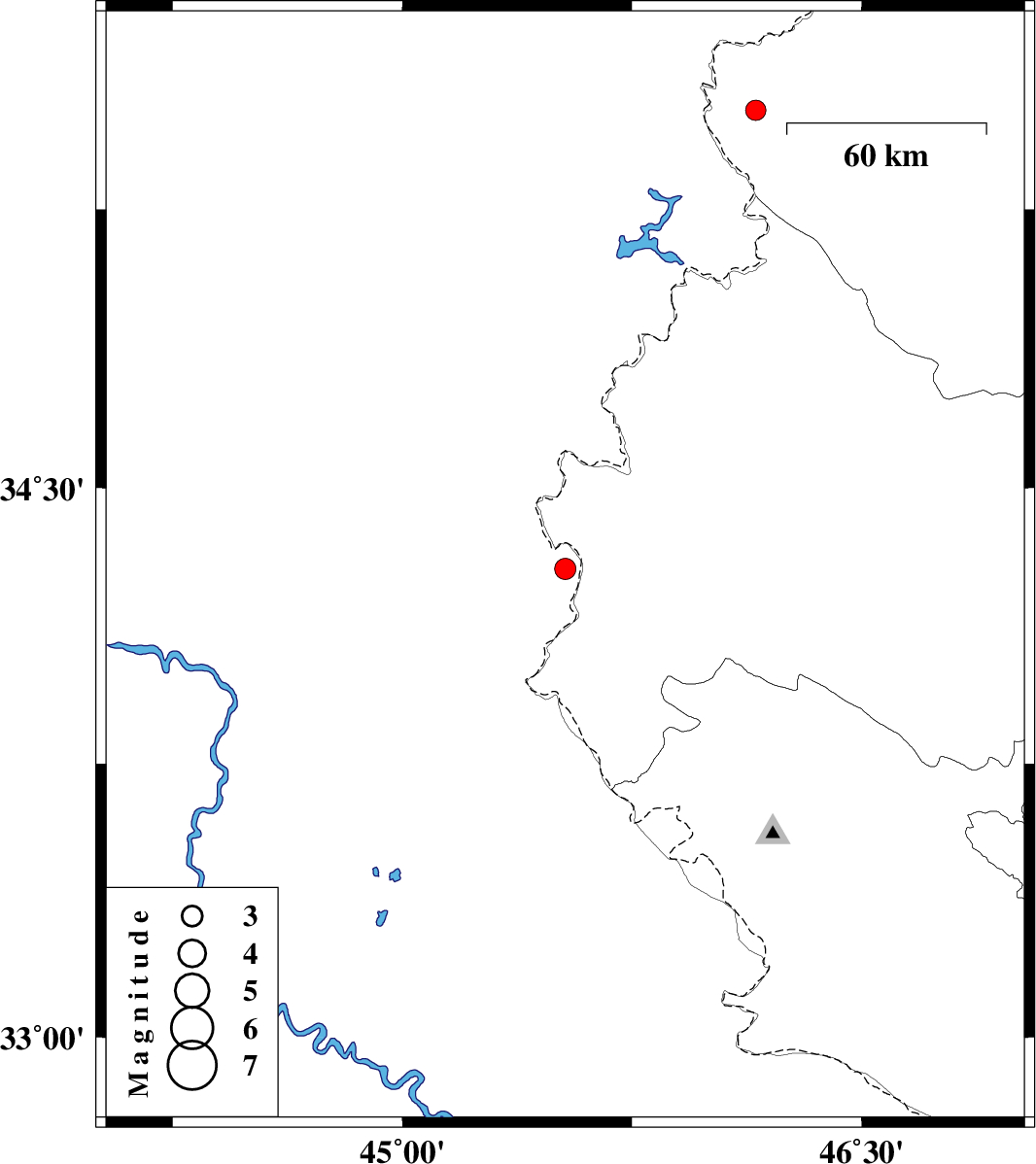 | 2017/02/24 | 00:37:36.7 | 04:07:36.7 | 34.281 | 45.532 | 14 | ML3.1 | Iraq, 27 km South of Qasr-E-Shirin |