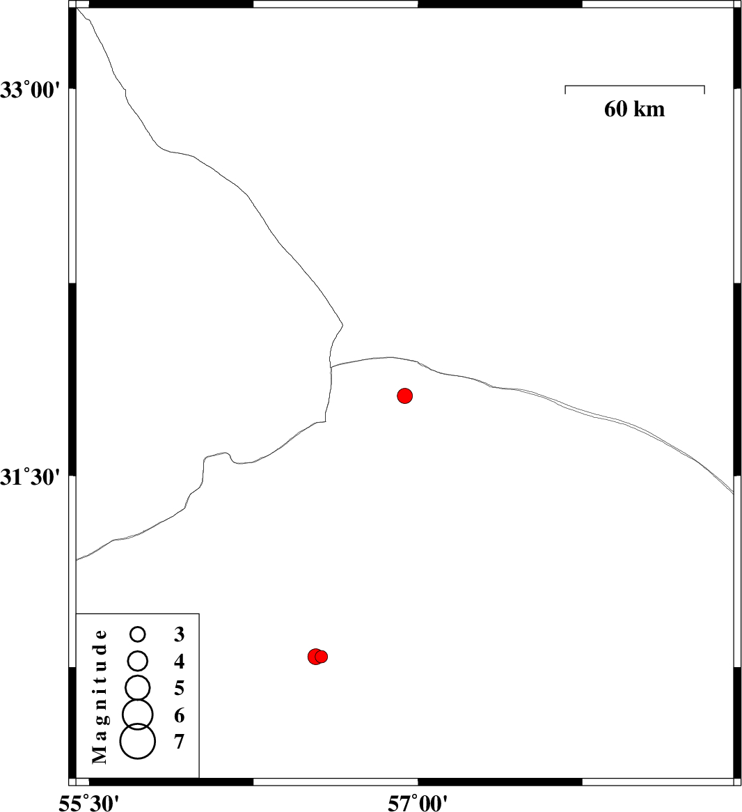 | 2017/02/20 | 03:05:29.9 | 06:35:29.9 | 30.791 | 56.533 | 14 | ML3.3 | Kerman Province, 4 km of Zarand |