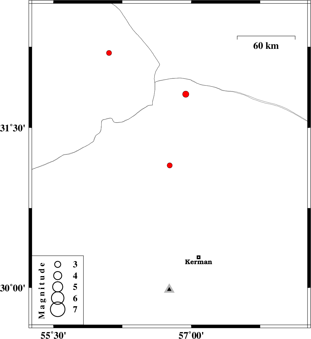 | 2017/03/04 | 19:36:56.2 | 23:06:56.2 | 31.149 | 56.765 | 14 | ML2.5 | Kerman Province, 14 km South of Ravar | ||