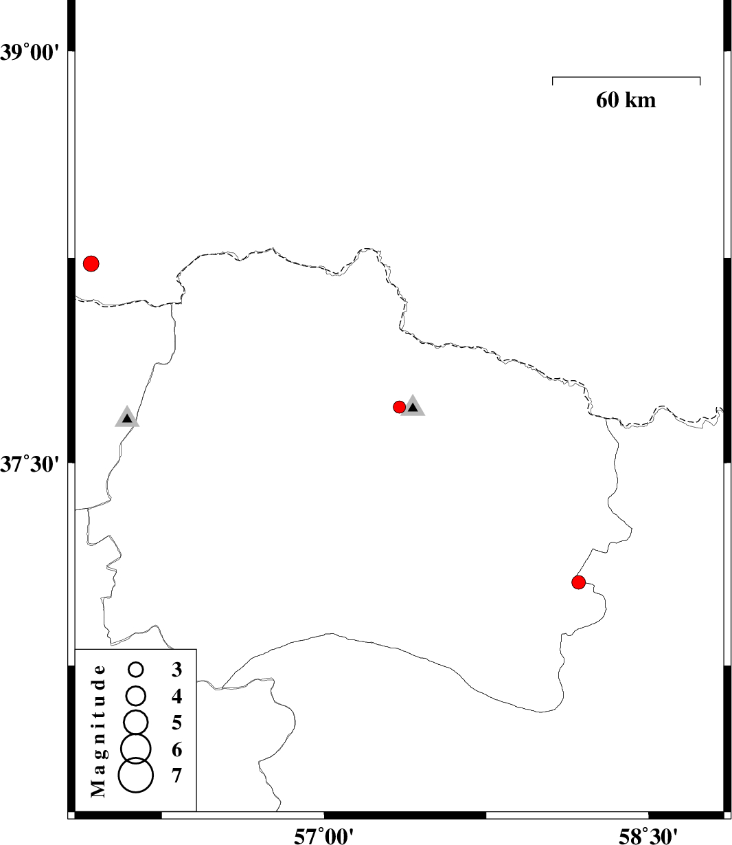 | 2017/03/09 | 04:36:51.8 | 08:06:51.8 | 37.705 | 57.348 | 6 | ML2.5 | Khorasan(north) Province, 26 km North of Bojnurd | ||
