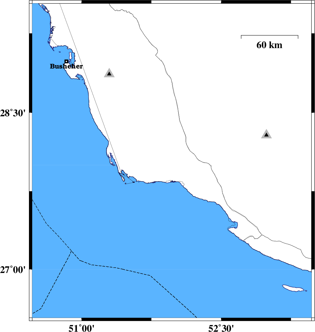 | 2017/03/12 | 07:28:39.2 | 10:58:39.2 | 28.033 | 51.97 | 14 | ML2.9 | Bushehr Province, 25 km North of Bandar-e kangan |