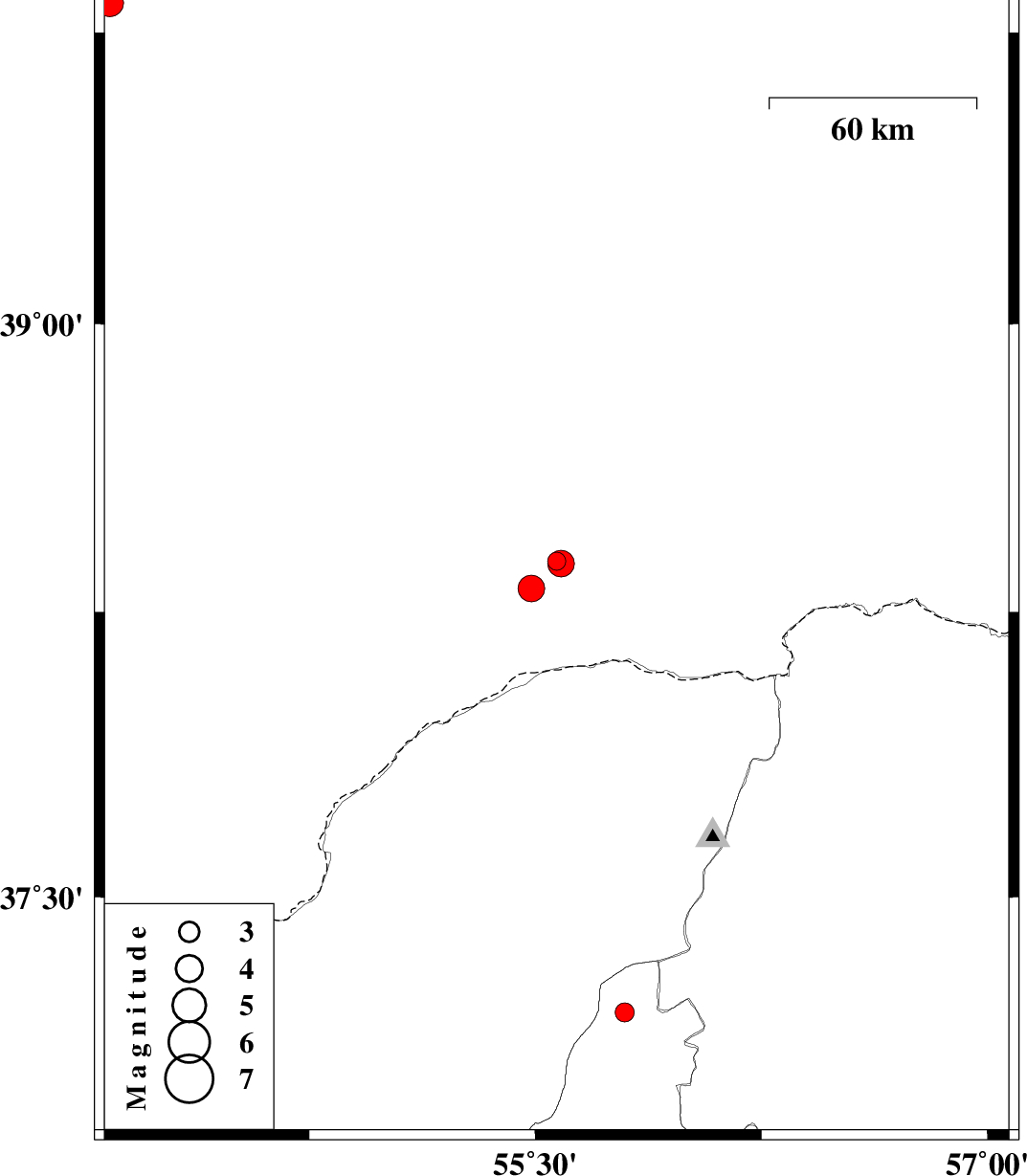 | 2017/03/10 | 01:33:39.6 | 05:03:39.6 | 37.195 | 55.797 | 8 | ML2.8 | Semnan Province, 36 km -East of Minodasht |