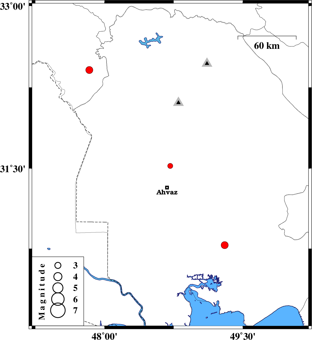 | 2017/03/27 | 01:56:53.6 | 06:26:53.6 | 31.523 | 48.713 | 15 | ML2.5 | Khoozestan Province, 23 km North of Ahvaz | ||