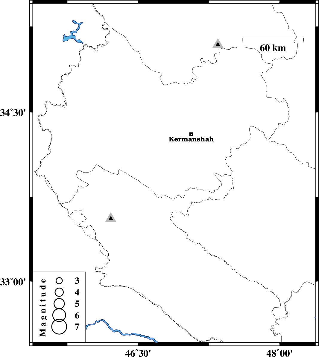 | 2017/03/24 | 13:39:54.3 | 18:09:54.3 | 33.951 | 46.881 | 14 | ML3.9 | Kermanshah Province, 32 km South-East of Eslam Abad-E-Gharb |