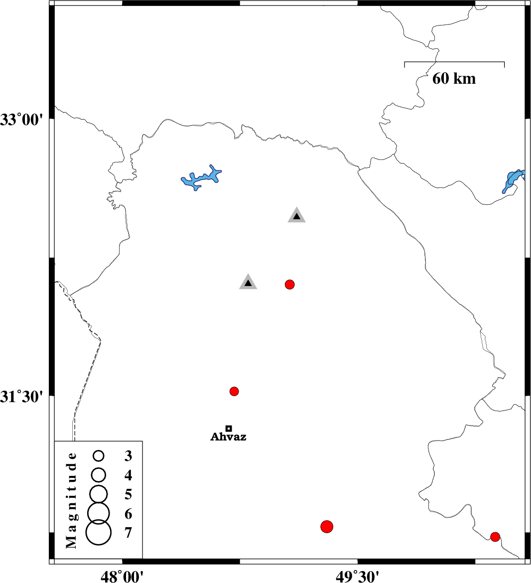 | 2017/03/27 | 01:56:53.6 | 06:26:53.6 | 31.523 | 48.713 | 15 | ML2.5 | Khoozestan Province, 23 km North of Ahvaz | ||