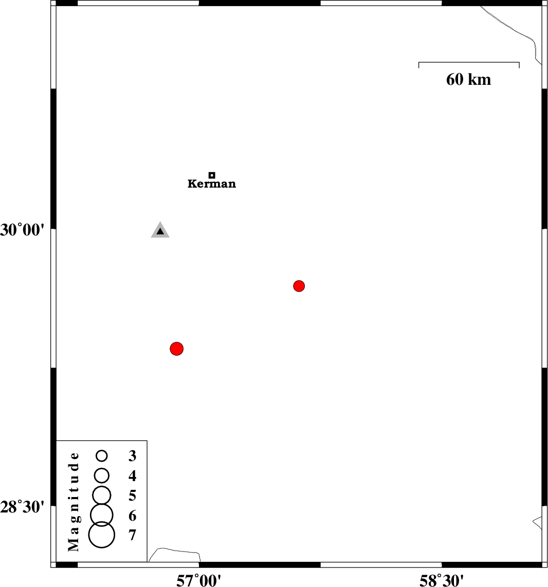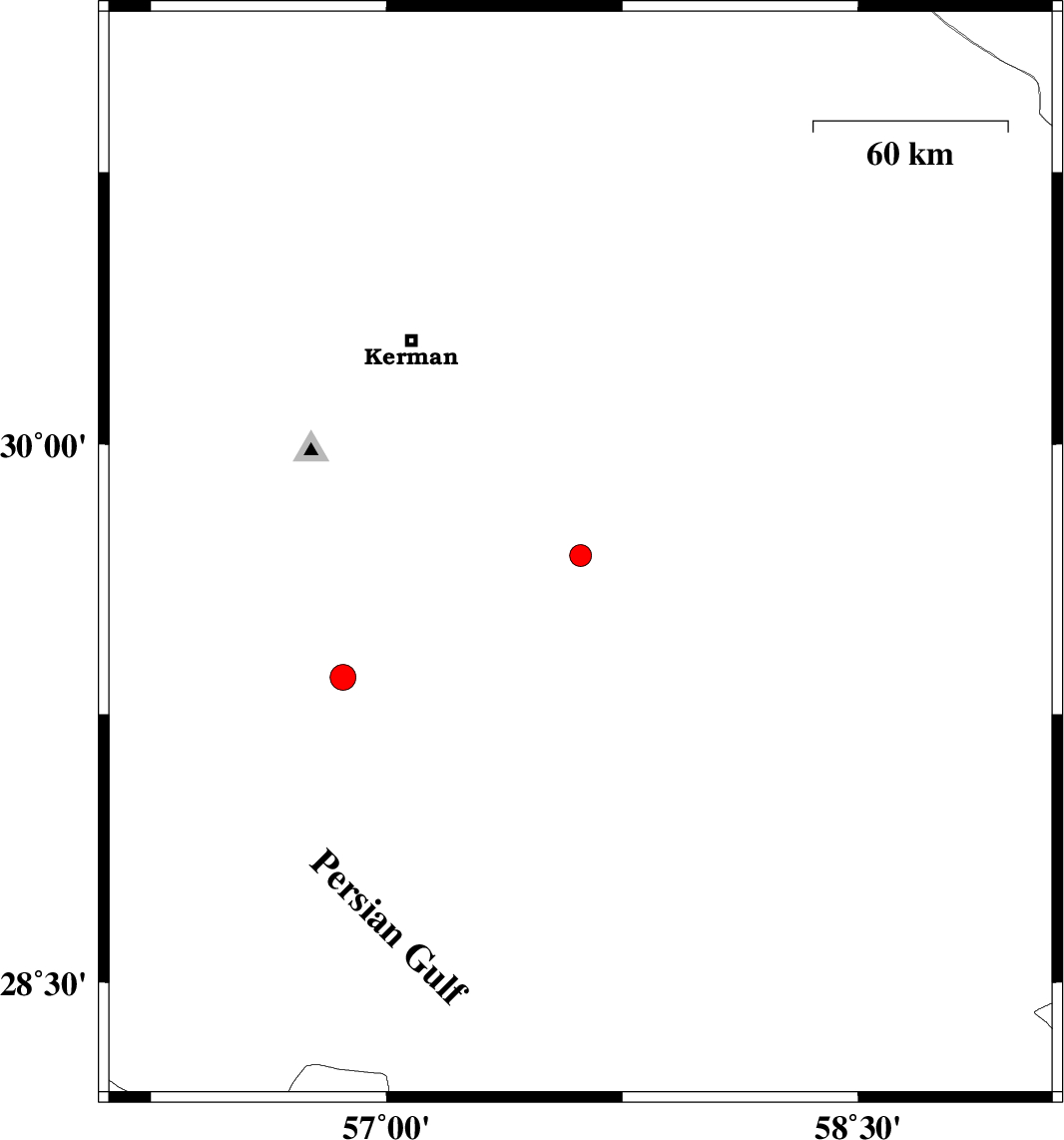 | 2017/04/01 | 19:59:44.8 | 00:29:44.8 | 29.353 | 56.861 | 15 | ML3.6 | Kerman Province, 28 km North-East of Baft |