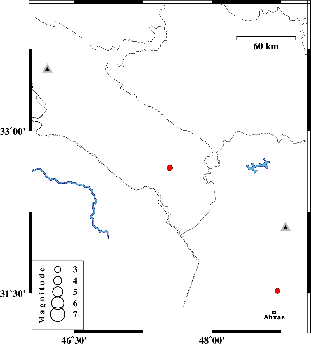 | 2017/03/27 | 01:56:53.6 | 06:26:53.6 | 31.523 | 48.713 | 15 | ML2.5 | Khoozestan Province, 23 km North of Ahvaz |