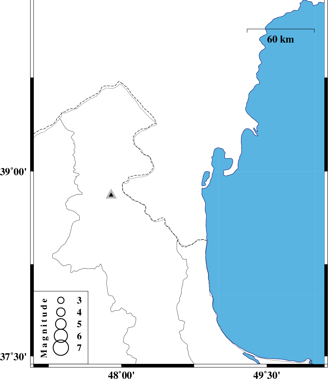 | 2017/04/04 | 23:16:05.1 | 03:46:05.1 | 38.935 | 48.594 | 15 | ML4.1 | Azerbaijan, 45 km -East of Germi |