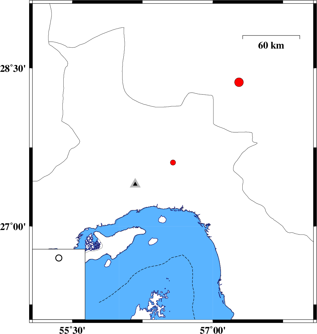 | 2017/03/25 | 07:38:38.1 | 12:08:38.1 | 28.366 | 57.28 | 15 | ML4.2 | Kerman Province, 56 km South-West of Jiroft |
