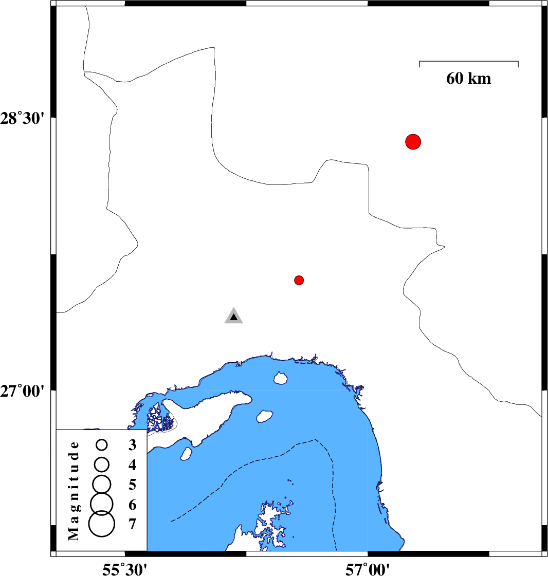 | 2017/03/30 | 04:36:10.1 | 09:06:10.1 | 27.606 | 56.575 | 14 | ML2.6 | Hormozgan Province, 55 km North-East of Bandar-e abbas | ||