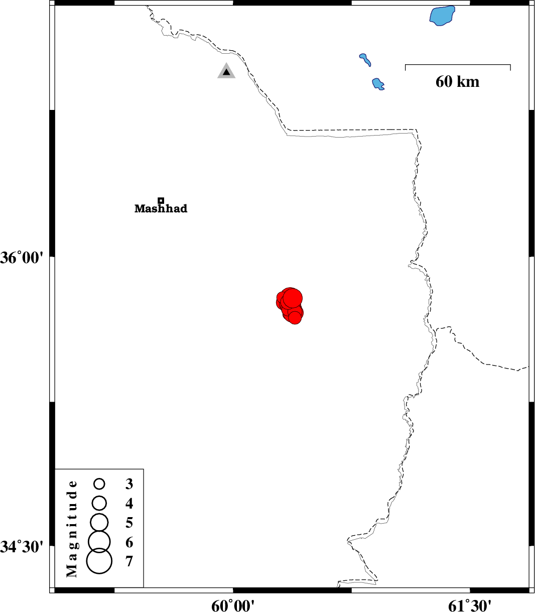 2017/04/05 06:09:10.6 10:39:10.6 35.78560.36114 ML6 Khorasan(center) Province, 47 km -East of Fariman