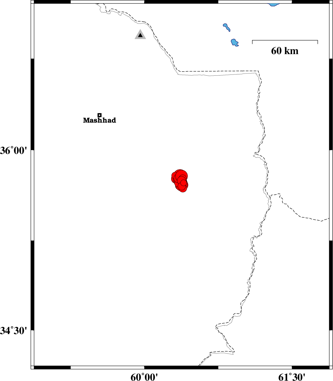 2017/04/06 02:22:16.6 06:52:16.6 35.74860.38315 ML4 Khorasan(center) Province, 49 km -East of Fariman