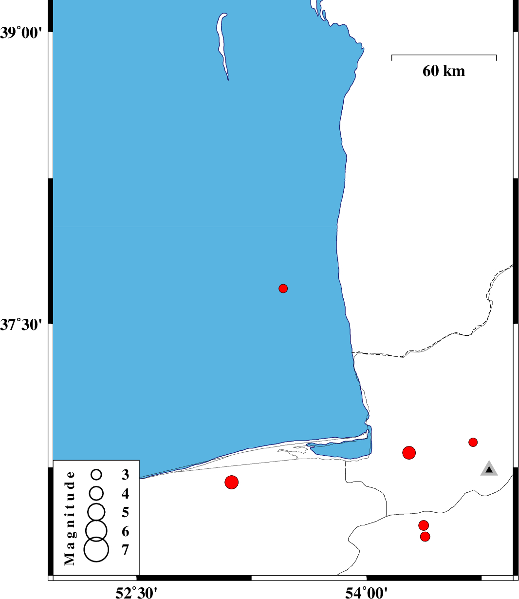 | 2017/03/20 | 09:17:14.1 | 12:47:14.1 | 36.672 | 53.12 | 15 | ML4 | Mazandaran Province, 13 km North of Sari | ||