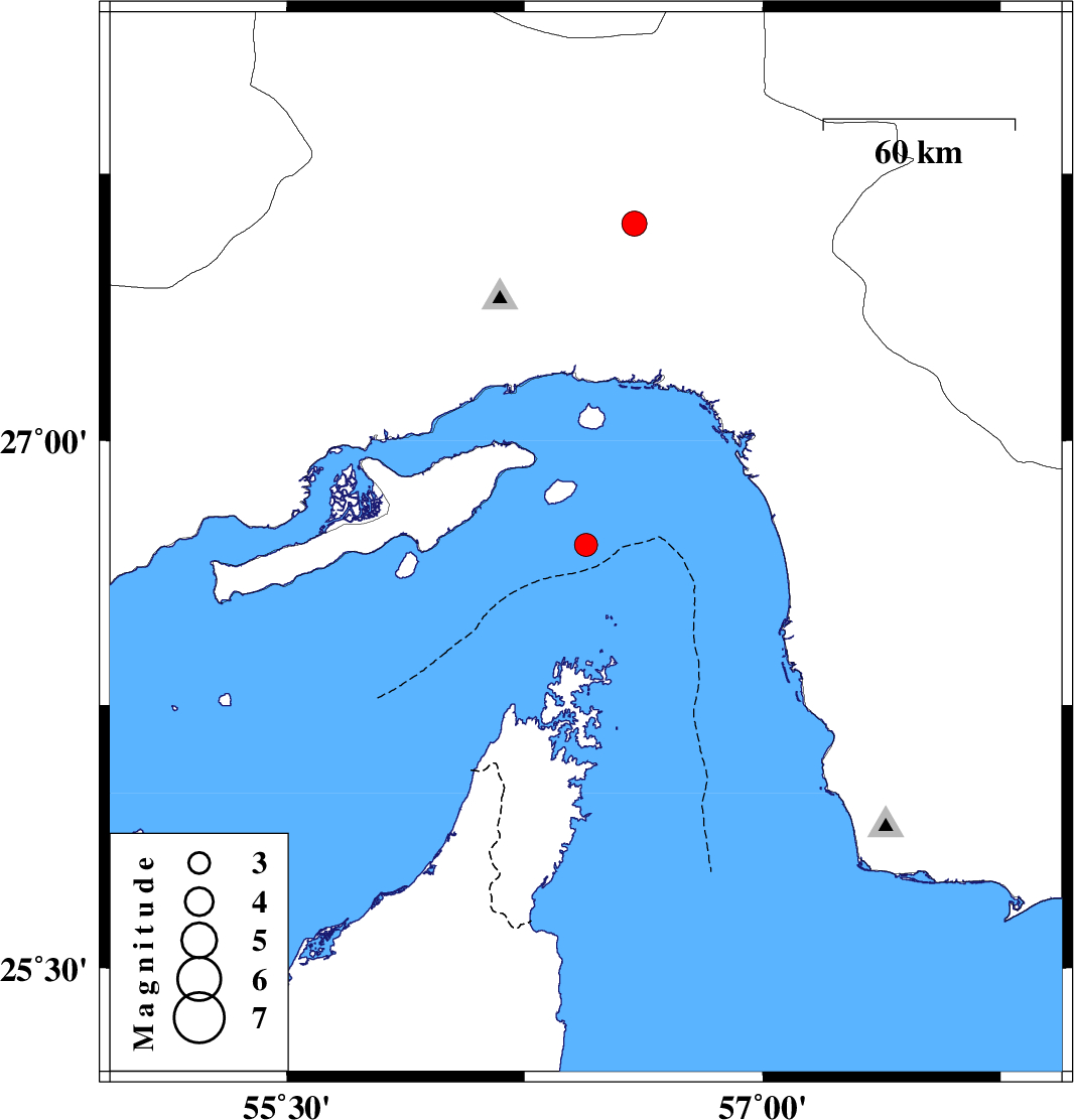 | 2017/04/17 | 23:14:54.5 | 03:44:54.5 | 26.705 | 56.443 | 18 | ML3.3 | Persian Gulf, 33 km South-East of Qeshm | ||