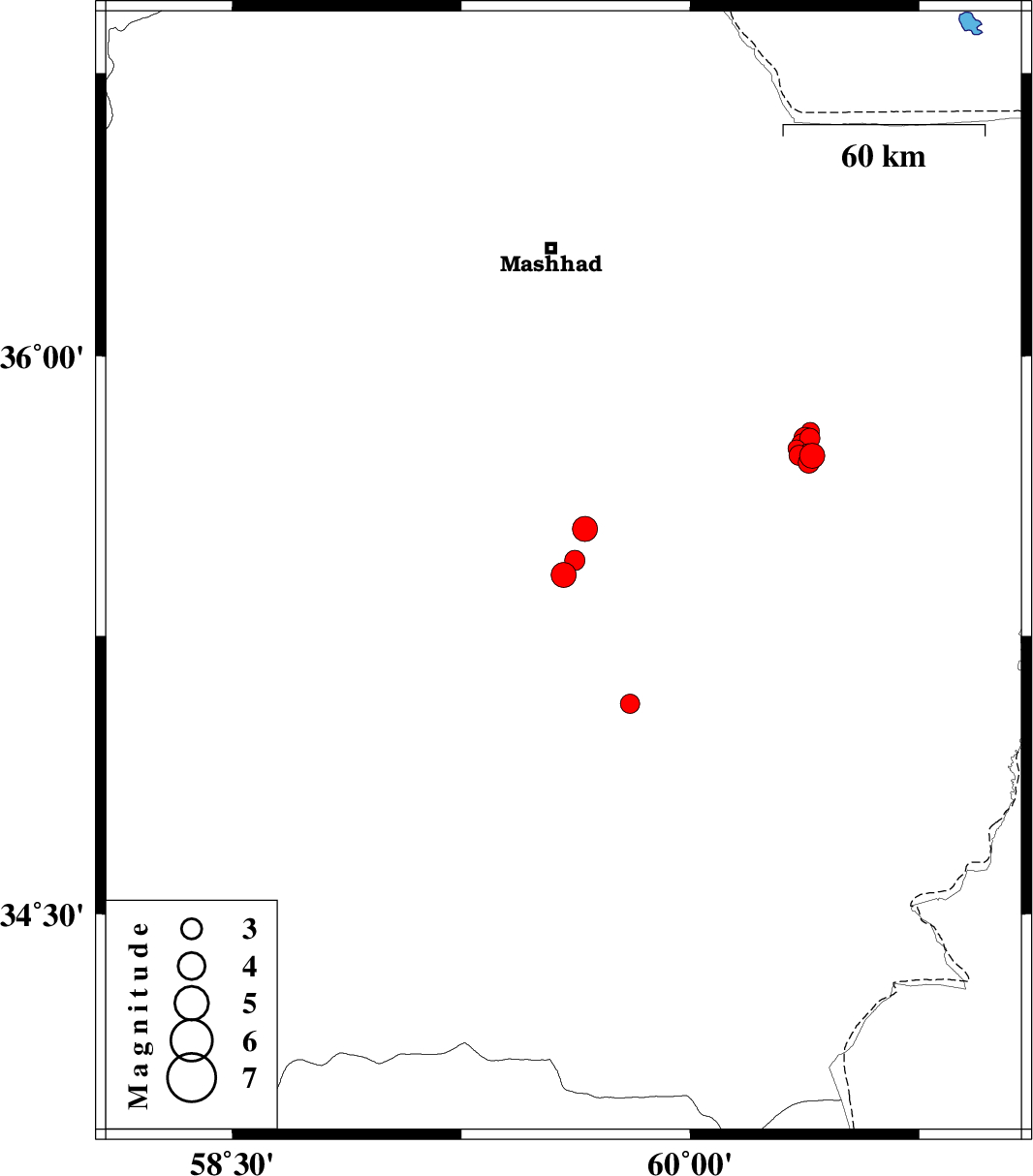 2017/04/16 18:02:05.5 22:32:05.5 35.7860.39116 ML3 Khorasan(center) Province, 50 km -East of Fariman