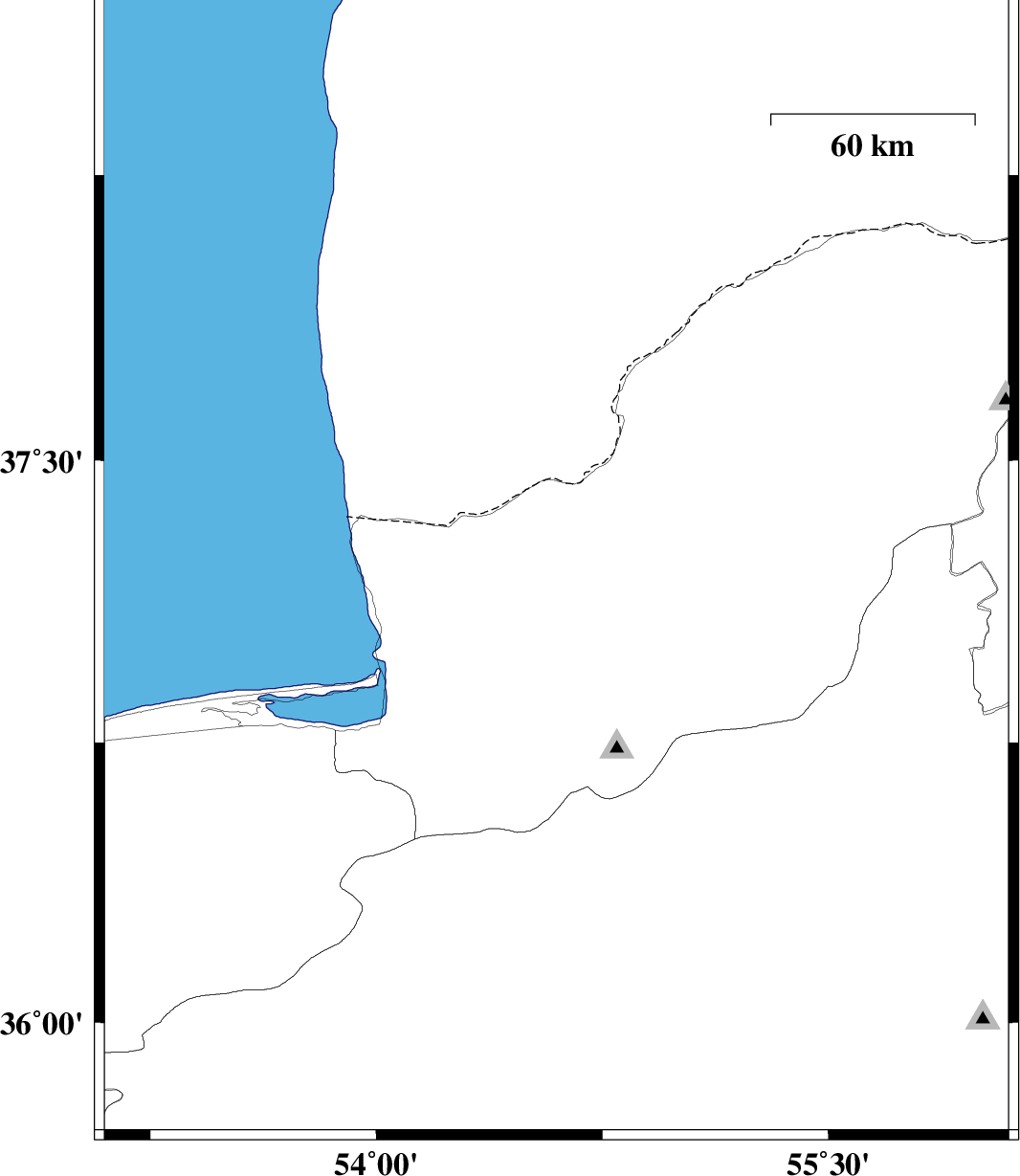 | 2017/04/25 | 11:54:44.1 | 16:24:44.1 | 37.21 | 54.598 | 15 | ML2.3 | Golestan Province, 25 km North-East of Aq Qaleh | ||