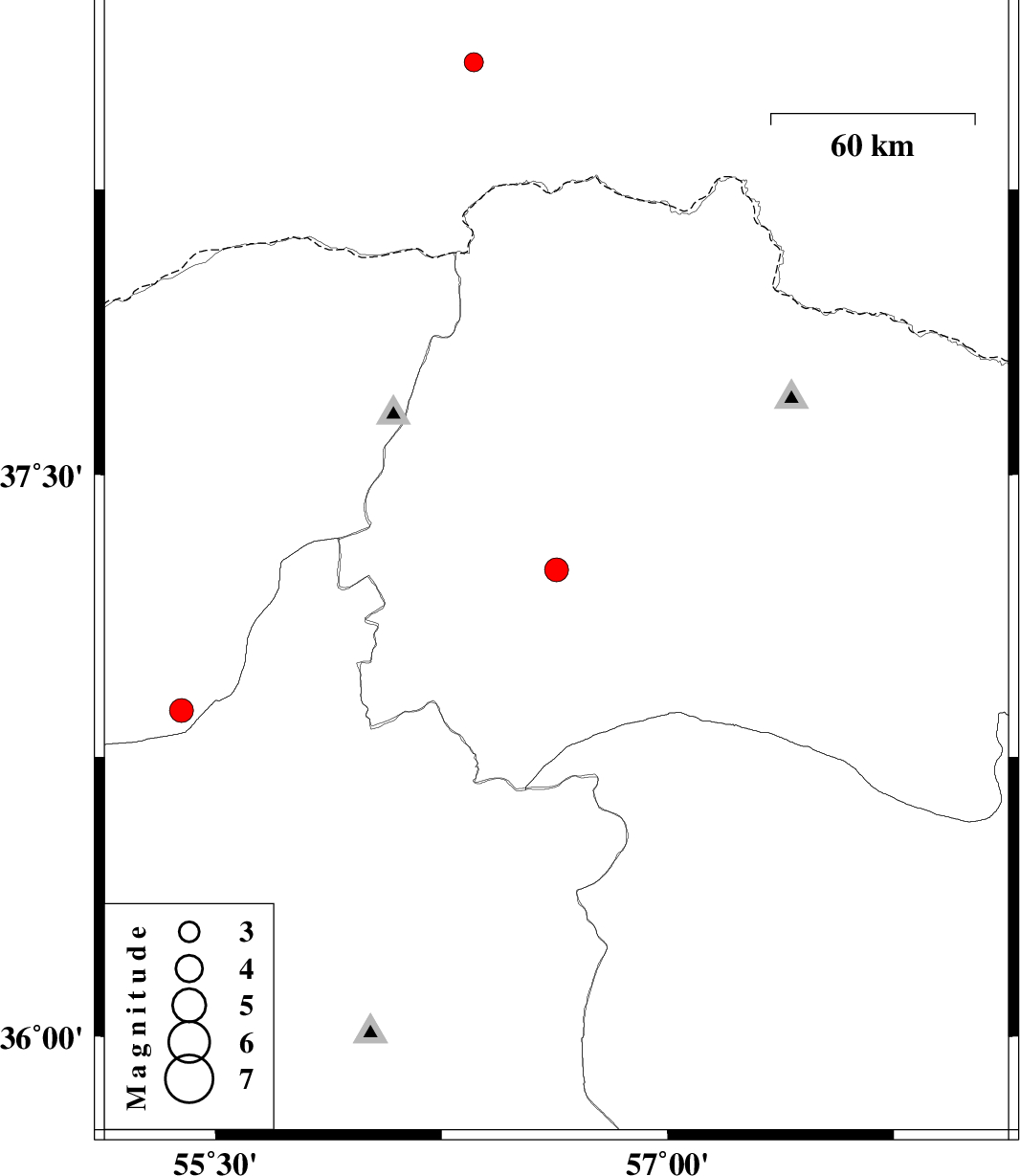 | 2017/03/31 | 12:05:37.2 | 16:35:37.2 | 36.874 | 55.387 | 6 | ML3.5 | Golestan Province, 40 km South of Minodasht |
