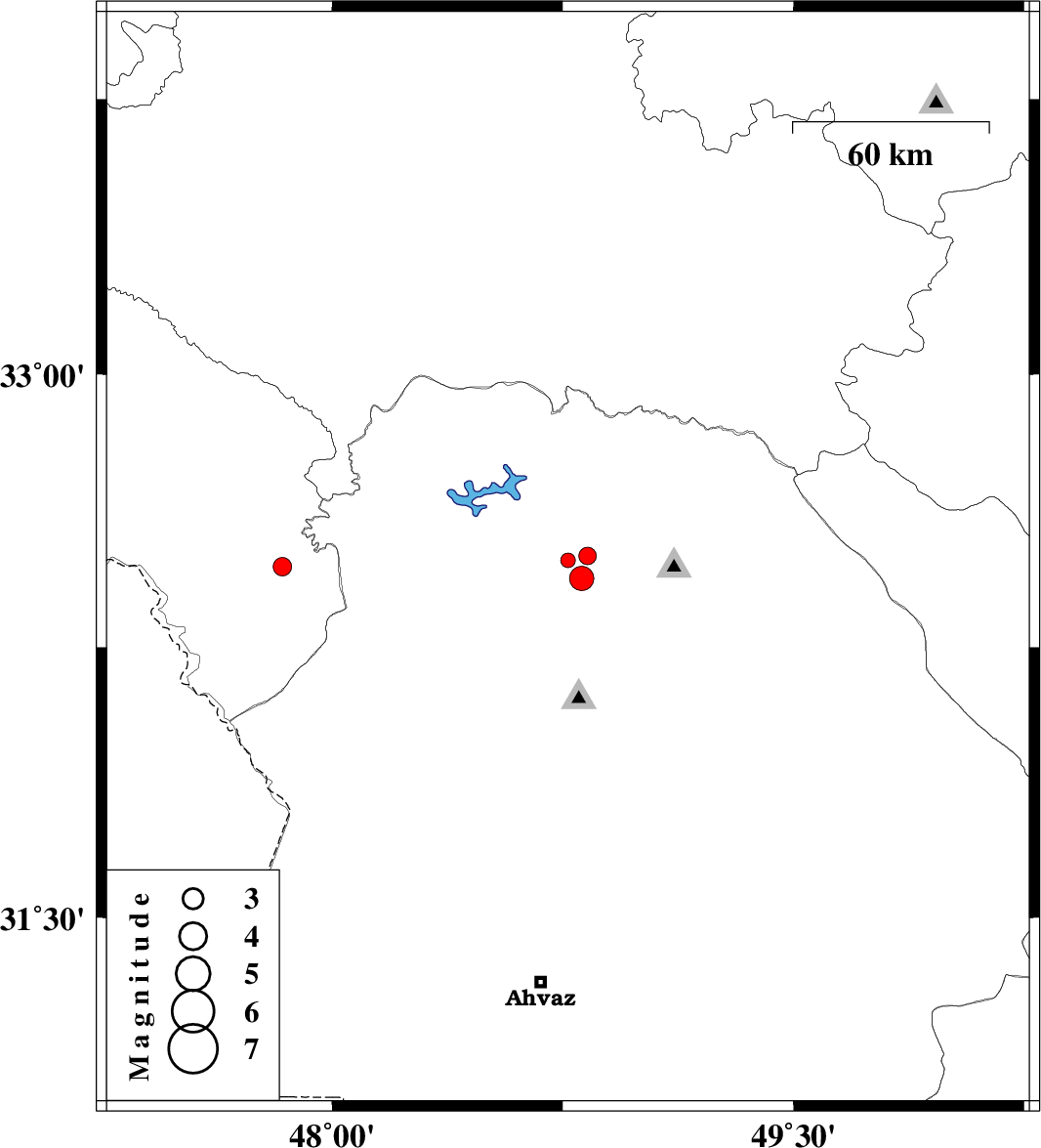 | 2017/04/12 | 14:09:59.7 | 18:39:59.7 | 32.489 | 48.767 | 18 | ML2.1 | Khoozestan Province, 34 km North-West of Lali | ||