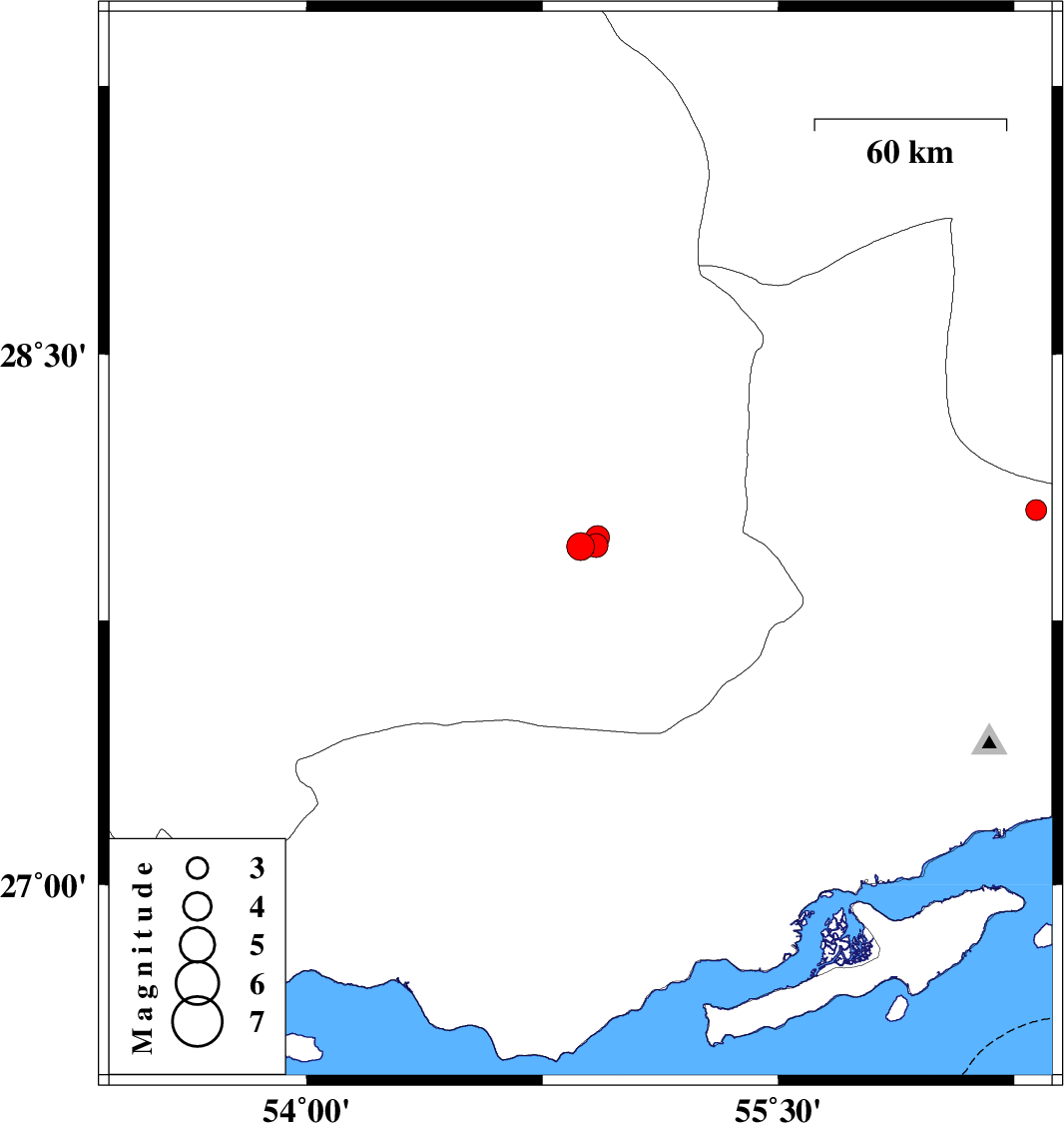 | 2017/04/22 | 09:58:21.5 | 14:28:21.5 | 27.961 | 54.921 | 15 | ML3.4 | Fars Province, 65 km North-East of Lar | ||