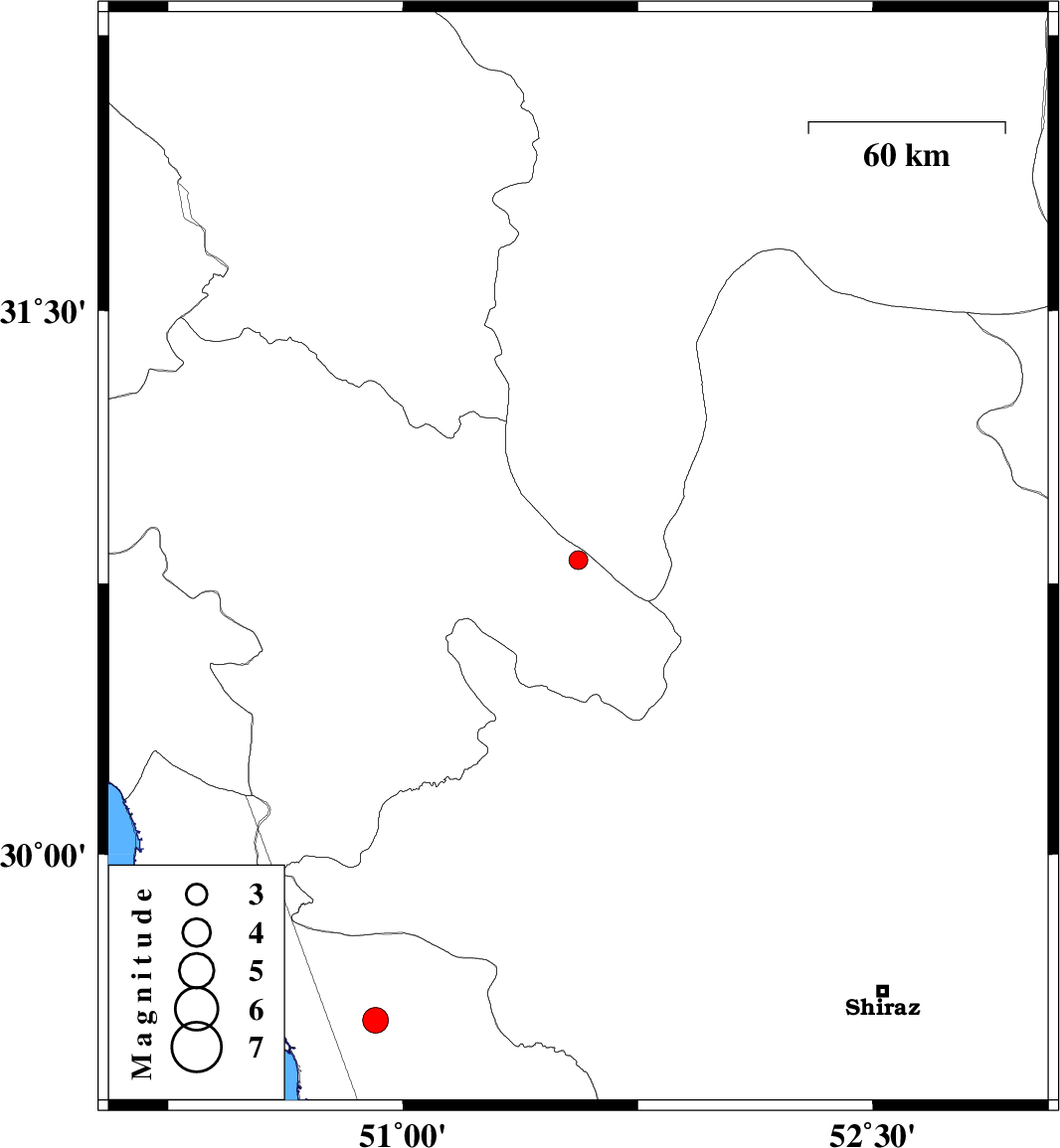| 2017/04/28 | 07:23:45.4 | 11:53:45.4 | 30.815 | 51.56 | 15 | ML2.7 | Kohkiluieh va boyerahmad Province, 11 km -East of Sisakht | ||